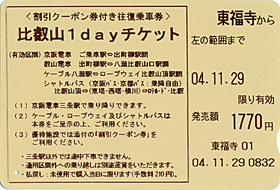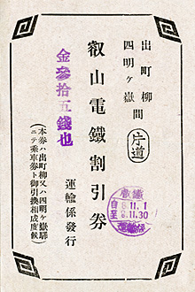 | 出町柳−四明嶽(現ケーブル比叡) 割引券 |