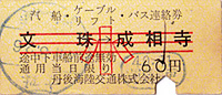 | 天橋立鋼索鉄道 | 片道券 | 汽船・ケーブル・バス 連絡券 |