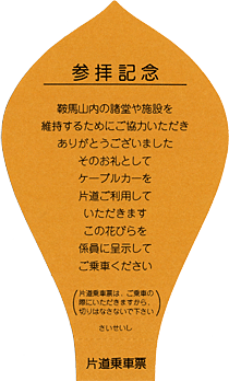 | ロープウェイへの連絡券 片道 大人 2002.4.29 購入日にはケーブル八瀬に改称されているがケーブル八瀬遊園 |