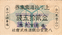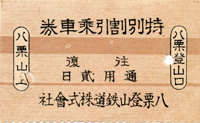 往復乗車券 八栗登山口駅発行 |