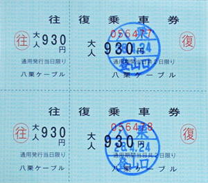 ケーブル再開20周年記念 往復乗車券 |